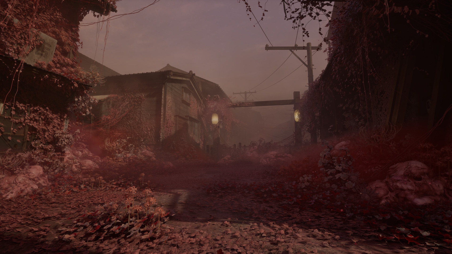 Während das „normale“ Setting des Spiels Ebisugaoka ist, in der wir u.a. auch die Schulfreunde von Hinako kennenlernen, ist das metaphorische Setting des Spiels, die für die Silent Hill Reihe bekannte „Otherworld“ eine japanische Tempelanlage, in der wir den geheimnisvollen „Fox Mask“ kennenlernen und die – anders als sonst – der (vermeintlich?) „saubere“ Teil des Spiels ist, während sich Ebisugaoka mit fortschreitenden Spielfortschritt immer weiter wandelt (siehe hierzu auch die nachfolgenden Screenshots). Das Spiel geizt hier nicht für mit für die japanische Kultur übliche Symbolik. So sehen wir Spider Lilies als Symbol des Todes oder die bekannten Torii Gates als Grenze zum Heiligen. Die Schauplätze sorgen auf jeden Fall für eine gute Horror-Atmosphäre. Der Soundtrack zum Spiel kann zwar nicht vollständig an die Höhen des Silent-Hill-2-Soundtracks anschließen, bietet aber wundervolle Stücke, die zur Atmosphäre des Spiels beitragen.