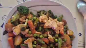 Alles anzeigenHeute mittag gabs noch Ravioli und Nüsse. Als Abendessen Sportgerecht Reis, viel Gemüse und Hähnchenbrustfilet.