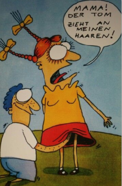 Er, ganz schüchtern und unerfahren fragt sie, wie die Stellung "69" denn funktionieren würde. Sie antwortet ihm: "Also pass auf, ich lege meinen Kopf zwischen deine Beine und du deinen Kopf zwischen meine Beine!" Gesagt, getan.