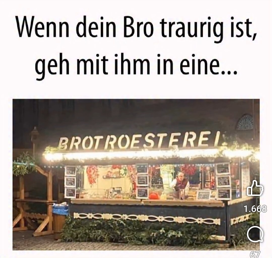 Er kommt mit hĂ€ngendem Kopf zur Runde zurĂŒck und sagt: "Oh je, Polizeikontrolle fast 2 Promille. Der FĂŒhrerschein ist weg. Bier haben wir auch keines. Was machen wir nun?"