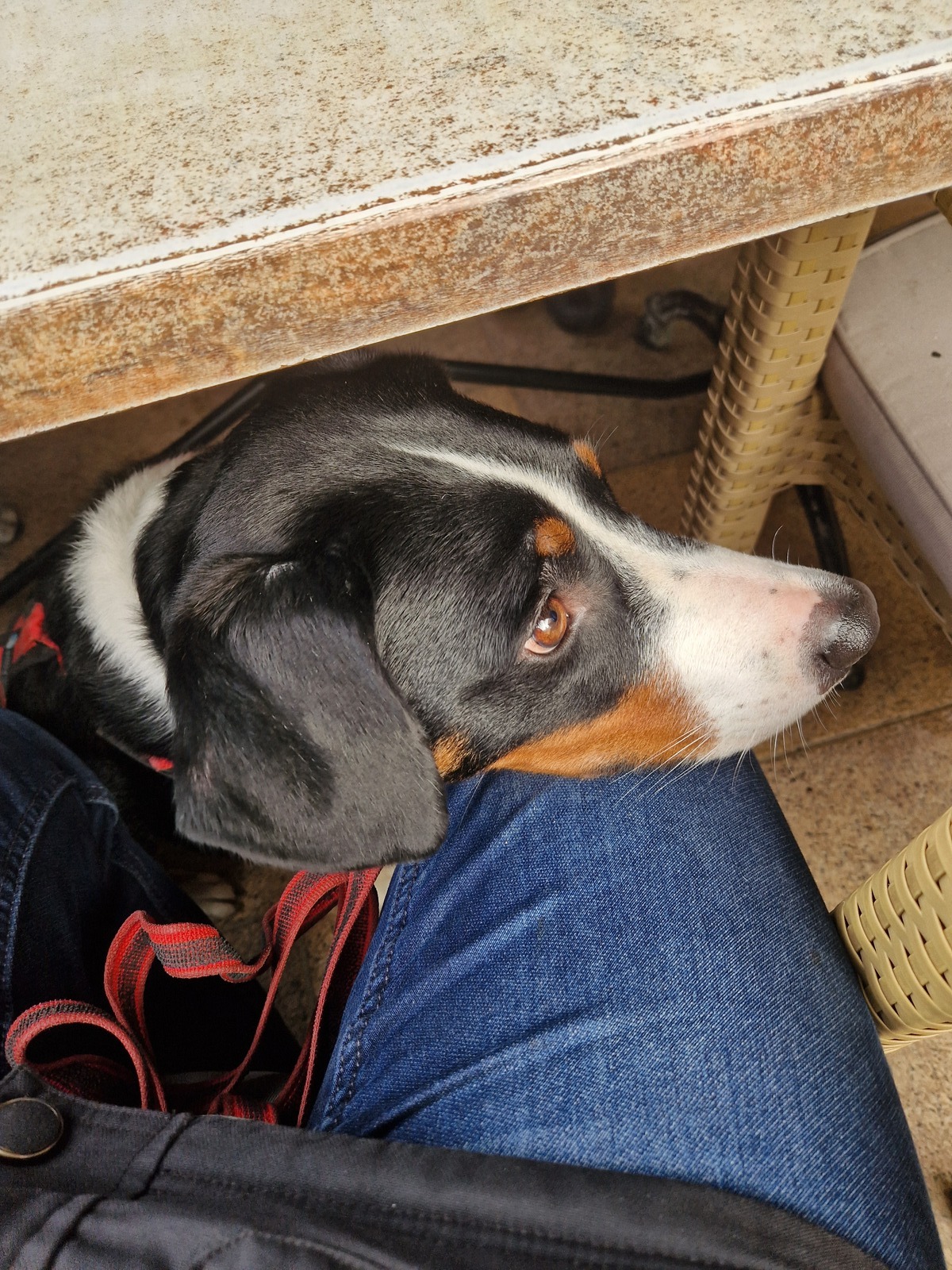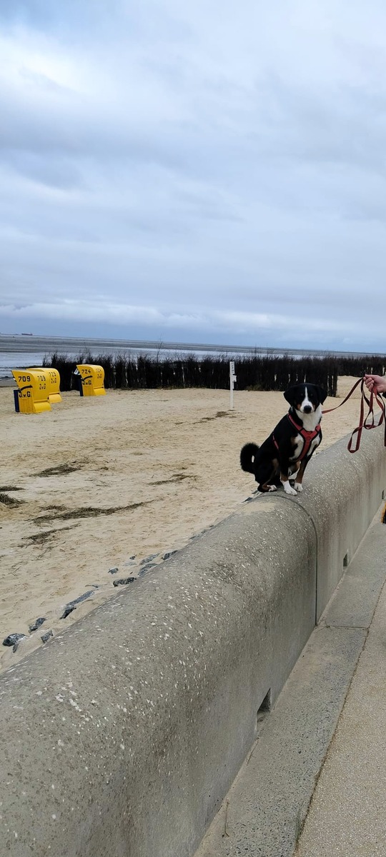 Das war der ruhige Abend, da darf er gerne auf die Couch. Zum Nachtschlaf geht's natürlich ins Hundekörbchen.
