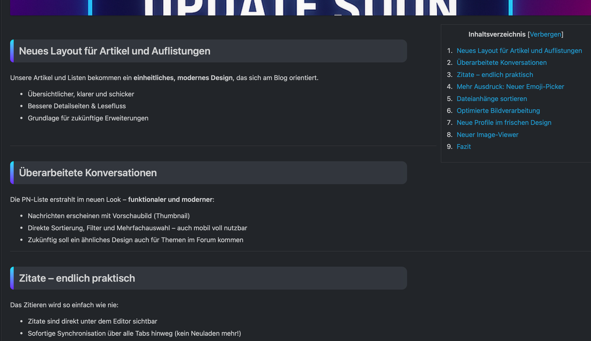 Das funktioniert aber auch jetzt im Forum für euch, wenn ihr eigene Tests, oder lange Texte machen wollt und mehr abgliedern möchtet!