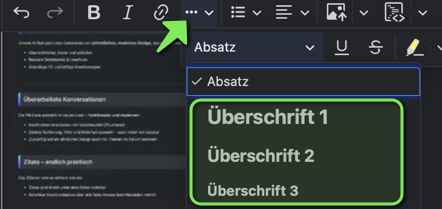 Wenn ihr im Editor eine Überschrift wählt wird dies auch in Zukunft so abgekapselt: