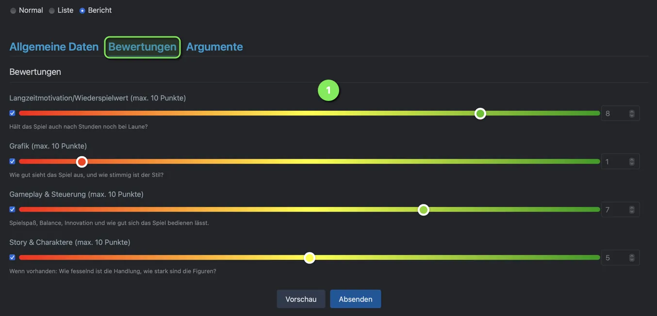 1. Hier könnt ihr nach den Vorgaben jetzt verschieben, wie es für euch ist. Die Balken sind selbsterklärend 1= schlecht, 10= Ist Top und dann gibt es die Abstufungen.