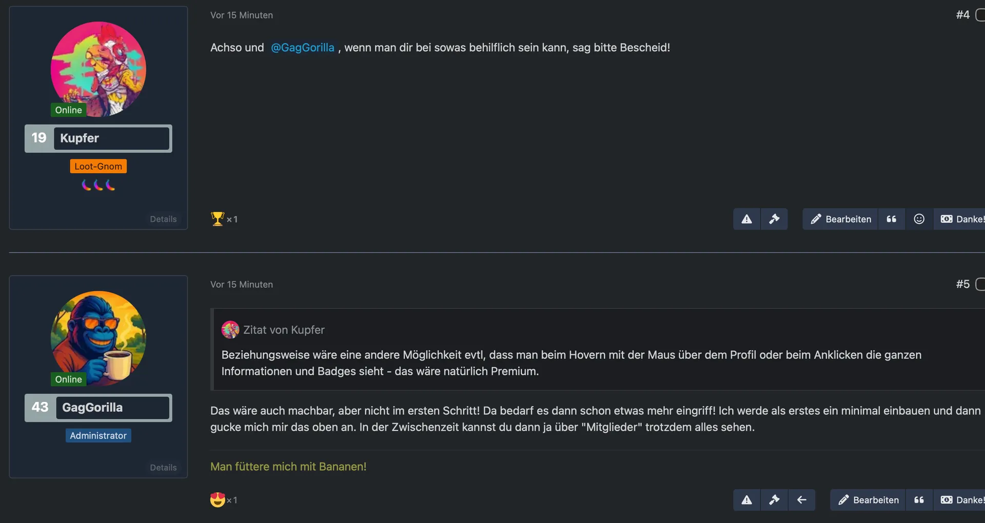 Beziehungsweise wäre eine andere Möglichkeit evtl, dass man beim Hovern mit der Maus über dem Profil oder beim Anklicken die ganzen Informationen und Badges sieht - das wäre natürlich Premium.