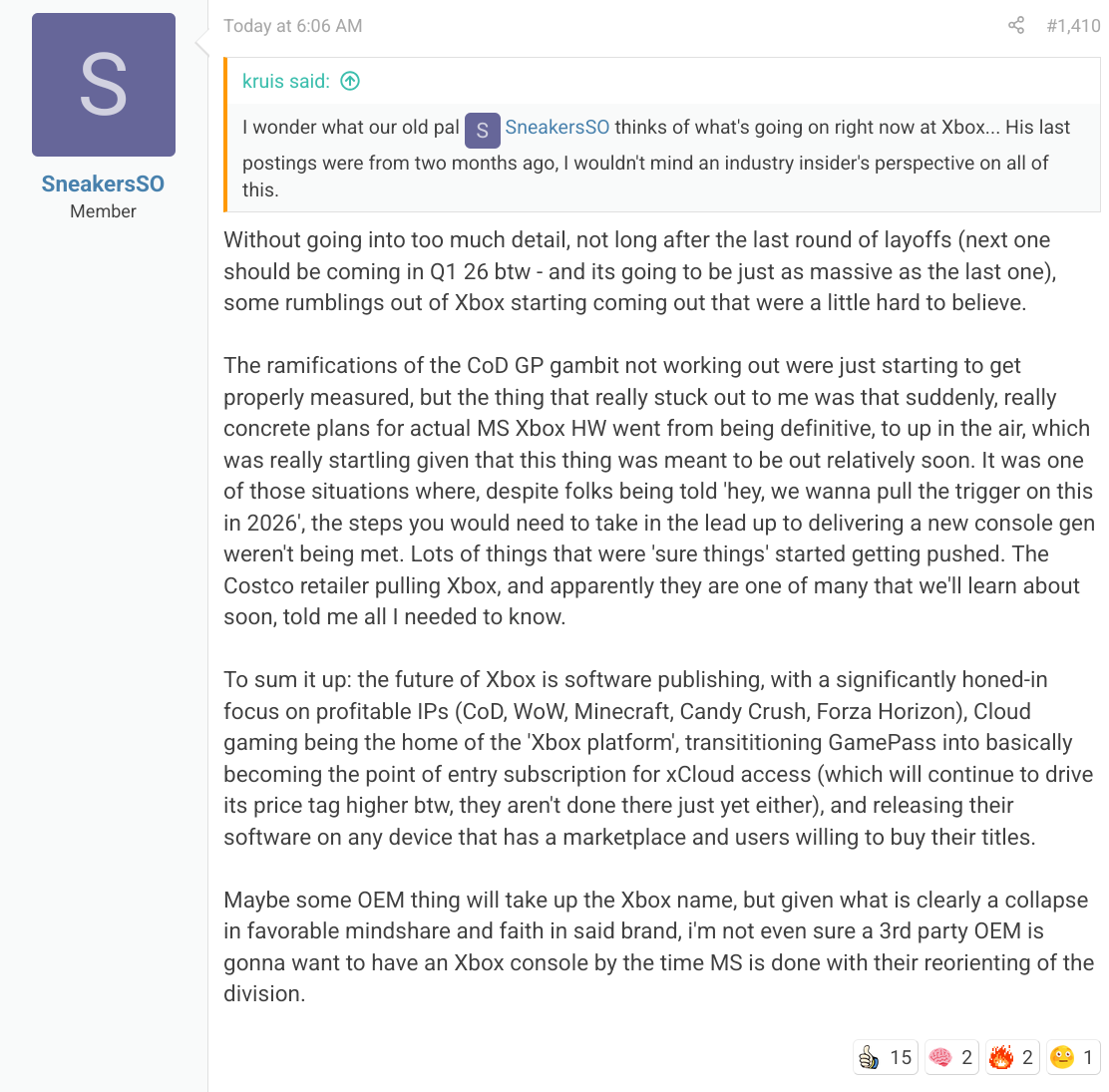 Ich wünsche mir das Sony Konkurrenz bekommt, aber ich sehe für die Marke und XBox Next keine Zukunft.
