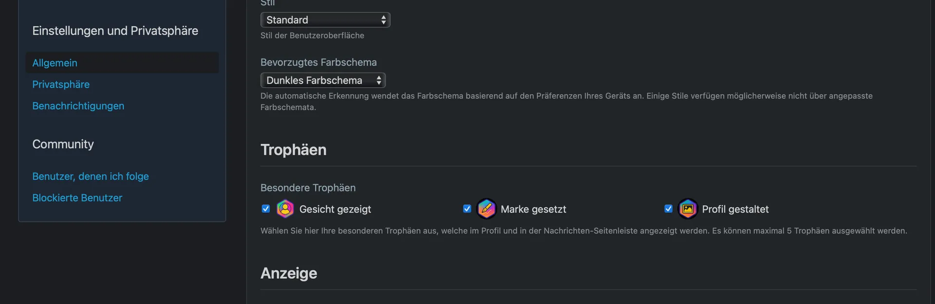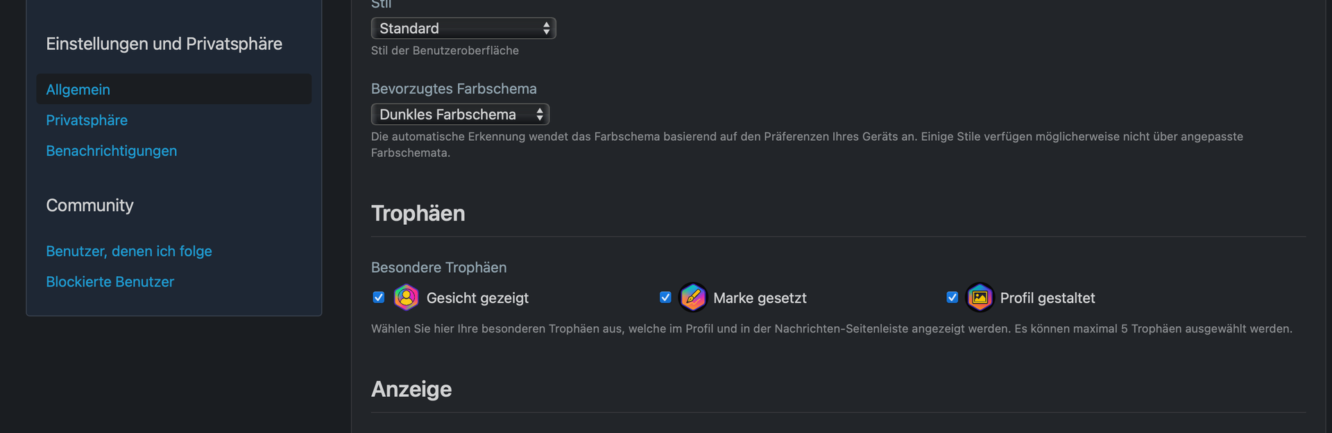 Es gibt auch schon einige User die doch schon einige Badges haben. Ihr könnt selbstverständlich unter "Benutzerkonto verwalten" euere wichtigsten Badges anzeigen lassen. Wenn alle angehakt sind, werden diese zufällig gewählt und dann mit einem Link +5 angegeben. Wollte ich nur mit euch teilen, weil ich schon danach gefragt wurde. Was nicht geht, alle anzuzeigen, denn das wird irgendwann sehr unübersichtlich