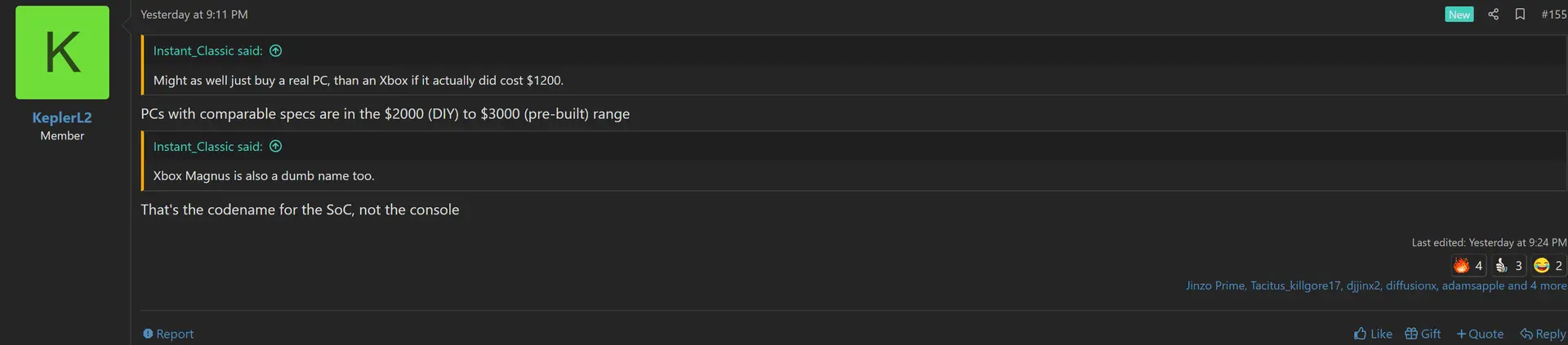 Wir haben jetzt die von mir zuvor erwartete "Bestätigung" von Kepler dass Xbox Magnus potent sein wird, allerdings auch ziemlich teuer (>1000):