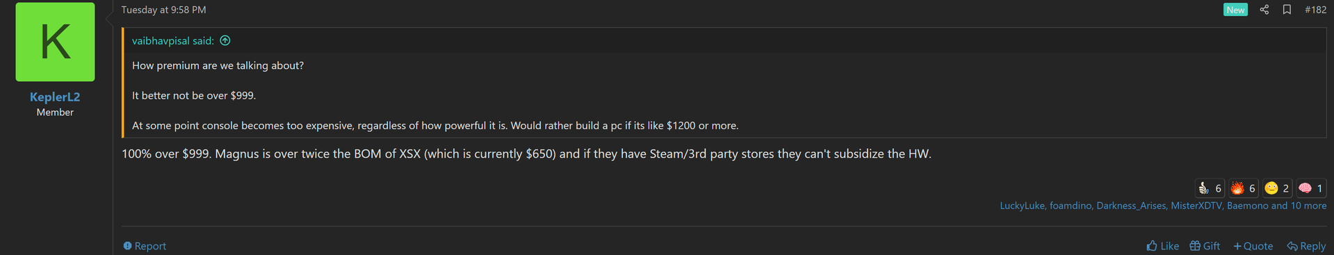 Wir haben jetzt die von mir zuvor erwartete "Bestätigung" von Kepler dass Xbox Magnus potent sein wird, allerdings auch ziemlich teuer (>1000):